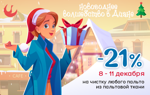 С 08 по 11 декабря скидка 21% на чистку любого пальто из пальтовой кани