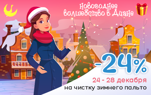 С 24 по 28 декабря скидка 24% на чистку зимнего пальто