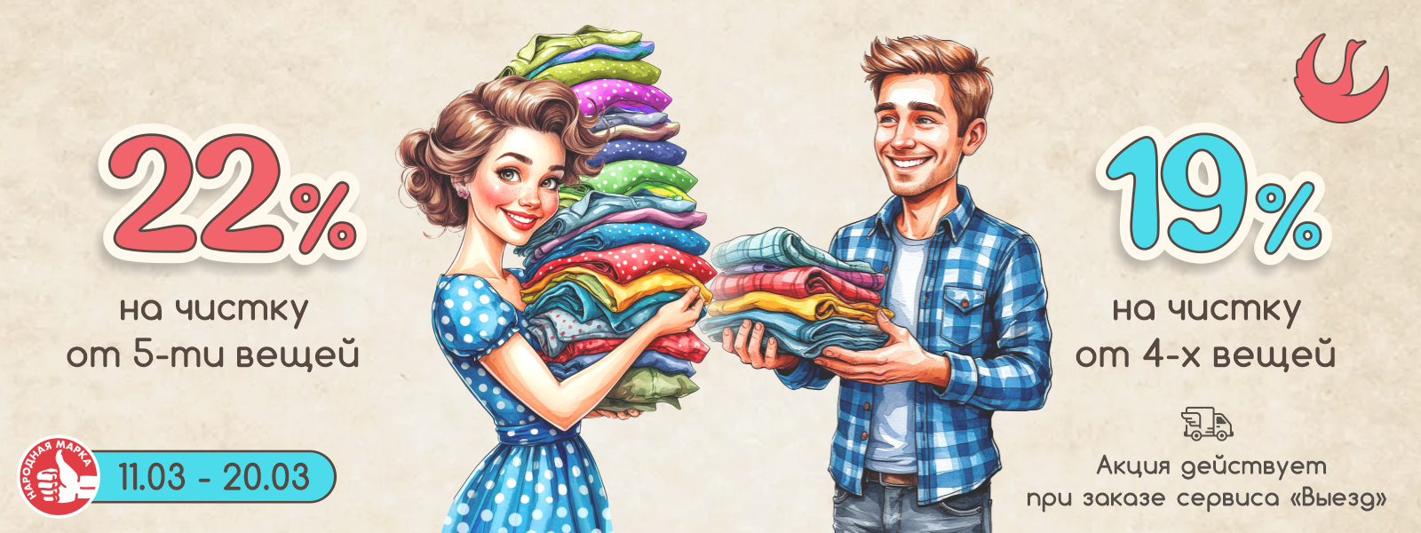1. Размер скидки составляет 19% и 22% и распространяется на заказ услуги химчистки всего ассортимента от 4-х или 5-ти и более изделий, за исключением ассортимента, который вынесен в пункт: «Скидка не распространяется»!